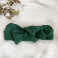 こっくりとした色合いのグリーンのリネンで製作したリボンヘアバンド。