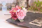 ピンクの薔薇とクリスマスローズの髪飾り フラメンコ フローレス バラ アジサイ アネモネ 髪飾り ダンス フォーマル パーティー