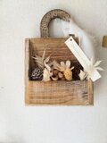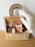 ウッド製のショッパーズバッグの花器にドライフラワー&木の実などをつめて・・