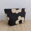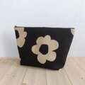 巨大30cmファスナーポーチ 北欧風花柄 バッグインバッグ 大きめ ブラック 497