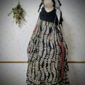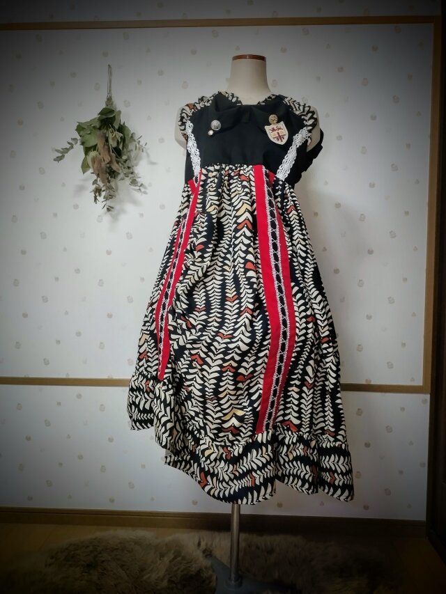 お着物をリメイクした左右アシンメトリーの変形スカートが印象的なジャンパースカートです。