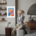 情熱の色彩とつぼみを付けたシンプルでおしゃれなフラワーアート 明るいお部屋の演出に。