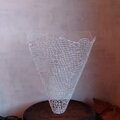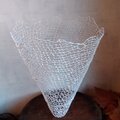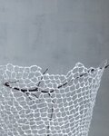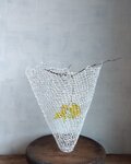 ワイヤーを編んで制作したオブジェです。表面に胡粉を固着させてあるので、マットで柔らかな質感になっています。白は照明を当てるとくっきり浮かびあがって引き立つとともに、影がとても綺麗に浮かび上がります。
