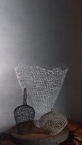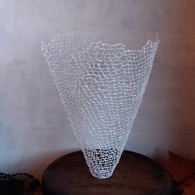 中に瓶などを置いて花を生けて編み目から間接的に見えるように扱っても面白いと思います。
