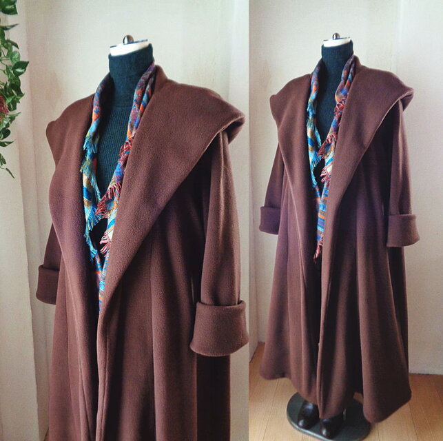 パッチワークスカート 着回し 大人可愛い シック ドレープ ビッグシルエット ビッグフード 魔法使い 魔法学校 修道士 フード付きコート 軽い 軽量 肩がこらない 軽量コート ロングコートマキシ丈コート ローブコート ローブ マキシ丈 ロングローブ パリ ロマンティック ゆったり サイズフリー アンチピリング 茶 茶色 ブラウン ダークブラウン チョコレート チョコレートブラウン ご褒美 1点もの 冬支度 クリスマス お正月 『冬支度ハンドメイド2025