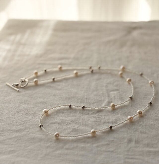 とても素敵パールの間にかキラキラが2個顔が明るくなりますネ。50センチとは、雰囲気がまた違いいいです。もちろんピアスもお気に入りです。ありがとうございます