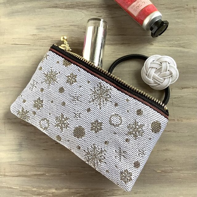キラキラ輝く美しい畳のへりで作ったミニポーチです。