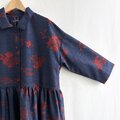 小千谷紬の着物からハイウエストの前開きギャザーワンピースにリメイクしました。