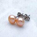 希少な濃いめオレンジ系淡水パールの一粒ピアス/イヤリングです。