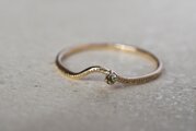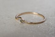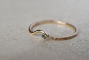 小さくて明るい雰囲気が魅力のペリドットを一粒留めて、リングはほんの少し曲げを行い半面にミルを打って制作しております。
