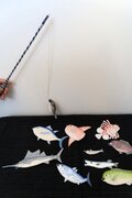 釣り竿に磁石を付け、魚に着けてある金具を引っ付けて,釣るかたちです。