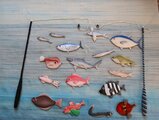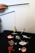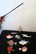 釣り竿に磁石を付け、魚に着けてある金具を引っ付けて,釣るかたちです。