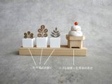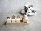 アロマストーンの鏡餅はとても小さくて指先でつまめるサイズ。松竹梅のお飾り3点も組み合わせた鏡餅セットが出来ました。細いバーに一列並べてすっきりとしたお正月飾りが完成です。