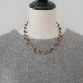 茶色やベージュ、アイボリー。カフェオレのような色合いと、まるで木のようなテクスチャーが魅力的です。素朴でありながらスタイリッシュなネックレス。