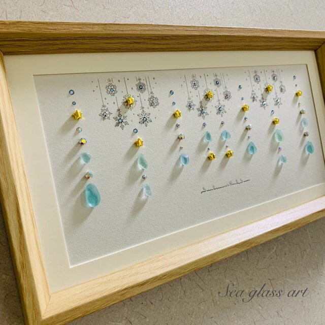 シーグラス クリスマス ガーランド アートフレーム インテリア雑貨 置物北欧ガラス細工 贈り物 クリスマスプレゼント
