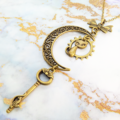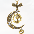 透かし模様の入ったオシャレな三日月と可愛い猫のモチーフに、猫つきの鍵チャームをプラスしてファンタジックなイメージに仕上げています