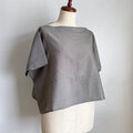 反物を横に使った幅広の身幅に小さな袖をつけたプルオーバーです。フラットな襟ぐりは千鳥がけで仕上げています。