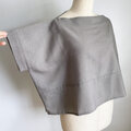 【1点もの】横づかいの幅広プルオーバー 袖付き 総手縫い -ウール着物 グレー鮫小紋(ヴィンテージ) POW705