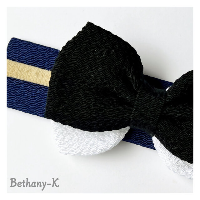 一年中おすすめ◆6cm×8cmのベビーからずっと使える和風リボンの髪飾り◆黒×白色のちりめんリボン