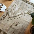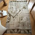 71×124ウール ベージュ×ブラウン パッチワーク トルコヴィンテージラグ