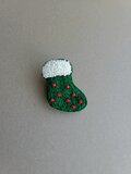 ちいさなクリスマスブーツのブローチ みどり・右向きA
