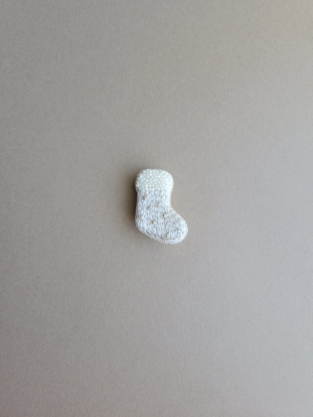 ちいさなクリスマスブーツのブローチ しろ・右向き