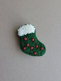 ちいさなクリスマスブーツのブローチ みどり・右向きB