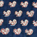 インド ブロックプリント生地 [50cm単位] Dabu リス インディゴブルー地 IN 栗鼠 りす IF0