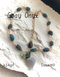 14kgf ハートグレーオニキスとエメラルド、オパールのブレスレット