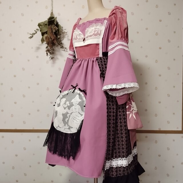 お着物とヨーロッパのヴィンテージファブリックからリメイクした、着ると異国のお姫様になれるワンピース。