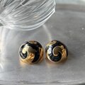 YA190-【 AVON 】エイボン・ヴィンテージイヤリング Gold-Tone Black Enamel Swirl