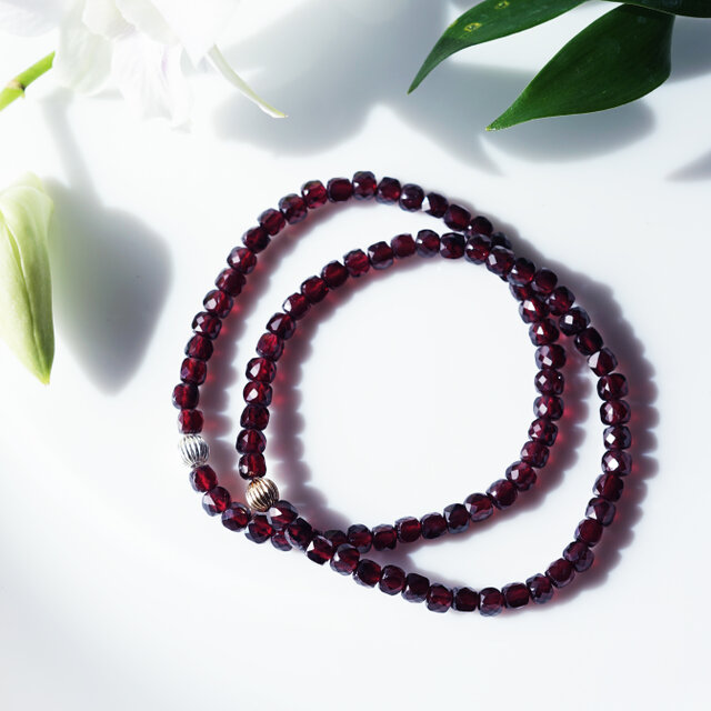 ガーネットの極上カットの粒たちが、自信ありげに、贅沢に連なります。