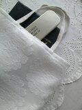 薄く柔らかいコットンローンの 肌ざわり は 優しく襟元を 温めてくれそう! 軽くて 小さくなるので バックに 入れて 置いて 何時でも使えるよう出来そう。 プチプレゼント とっても可愛い。