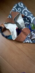 いつもいっぱいのアイデアで可愛い作品にしてくださる吉成作品が好きです♡ 今回も大判風呂敷に手間を惜しまず刺し子が綺麗に刺されて両ポケットには手の込んだパッチや刺し子で楽しませてくれています♪ 寒さが和らいだ頃の私のスタイルに欠かせません ありがとうございました♡