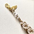 yumri ⌘ macrame パールマクラメレースストラップ(パーツ付)ゴールド・ナスカン小 [ライトベージュ]