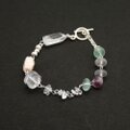 透明感あふれるフローライトを中心に、クオーツ、希少なハーキマーダイヤモンド、上品なパールを組み合わせた、優しい光をまとうブレスレットです。