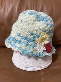 雪が降り積もっているような淡い色合いの帽子に、ブローチがとても映えますよ♬
