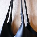 深いブラックがすっと光を受けるスムースレザー。セミマットの艶とほどよい厚み、くったり落ちるドレープが上質さを物語ります。長めのストラップは肩に吸い付き、コートの上からも掛けやすい。口元は大きく開いて出し入れ軽快、大容量。使うほど艶が増し、日常を凛と引き締める一点です。