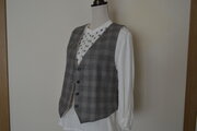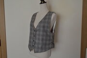 ポリエステル混のウール生地(グレー系チェック)で作りました