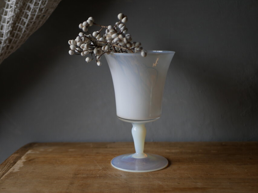 ホワイト オパリンガラス フラワーベース フランスヴィンテージ ブロカントのある暮らし