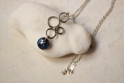 シルバーの泡モチーフと深い藍色のカイヤナイトの石が胸元を彩ります。