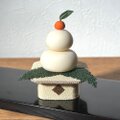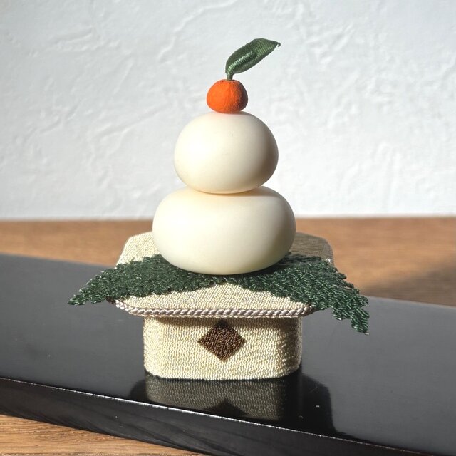 正月飾り【ミニ鏡餅 縮緬三宝付き】正絹 置物 コンパクト ミニチュア 上品 おしゃれ ちりめん細工