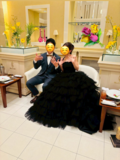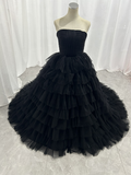 実例写真!パーティードレス ブラック ベアトップ もこもこドレス フレアスカート 編み上げ 花嫁