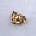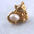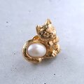 1886年アメリカのニューヨークにて小さな香水会社を創業、1971年に本格的にコスチュームジュエリーの製作を開始したAvon(エイボン)の1994年に販売された“Friendly Critters Tac Pin”のゴールドメタルの猫のお腹にフェイクパールがあしらわれたジェリーベリーデザインのヴィンテージブローチです。