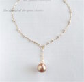 チェーンには、丸い小さなパールを付け、Yネックレスにしました。