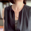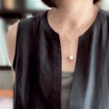 ステーションネックレスにして、さりげなくトップのパールを引き立てています。