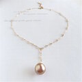 超大粒 いびつな淡水パール ペールピンクゴールド Yネックレス 16.2x15.6mm 1点もの