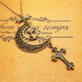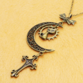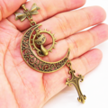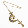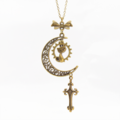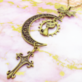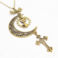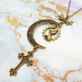 アンティークゴールドでカラーを統一したの猫と三日月のスチームパンク風ネックレスです
