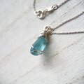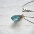 《Silver925》海の一雫 スタイリッシュな海色シーグラスのネックレス 45cm