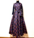 バイヤス地の目で仕立てたフレアー分量たっぷり(3m以上)のワンピースです。